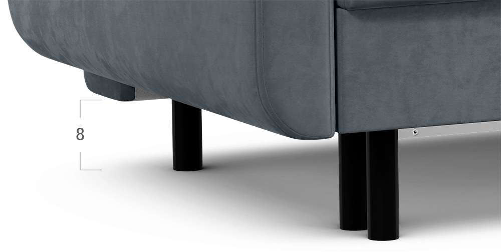 Благодаря высоким конусовидным опорам под диваном проходит робот-пылесос и легко проводится влажная уборка, что обеспечивает чистоту и порядок в доме. Цвет опор подбирается дизайнерами с учетом фактуры и цвета обивочного материала, а также последних модных тенденций.