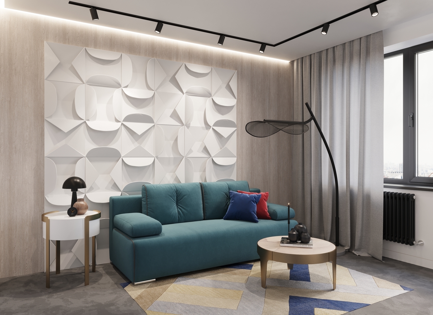 Спинка, выполненная в обивочной ткани, позволяет ставить диван в центре комнаты и зонировать пространство.