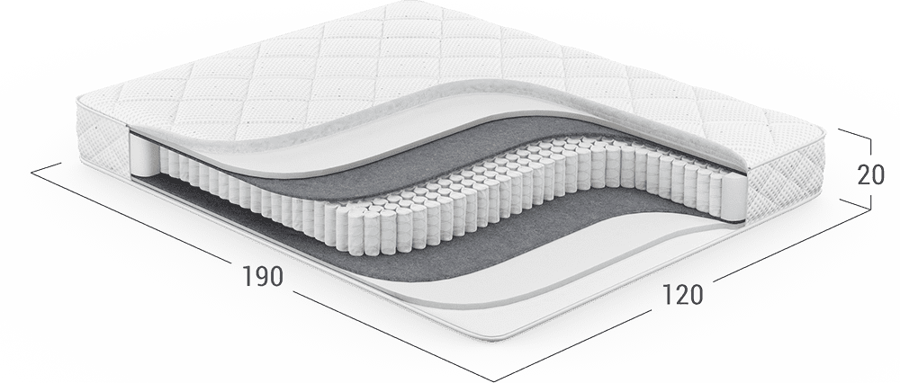 Надежно изолирует комфортные слои от соприкосновения с пружинным блоком и защищает материалы наполнения матраса от износа.
