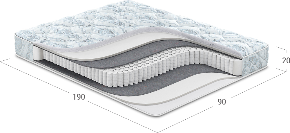 Надежно изолирует комфортные слои от соприкосновения с пружинным блоком и защищает материалы наполнения матраса от износа.