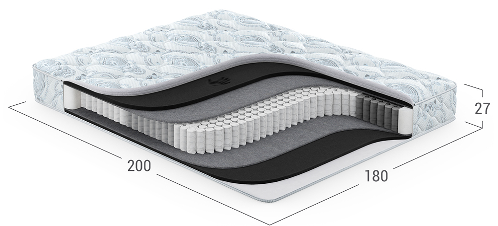 Матрас, в основу которого положен независимый пружинный блок (НПБ). Обратите внимание: чем большее количество пружин приходится на спальное место, тем точнее оказывается поддержка спины, а значит, более комфортным становится матрас и Ваш сон.