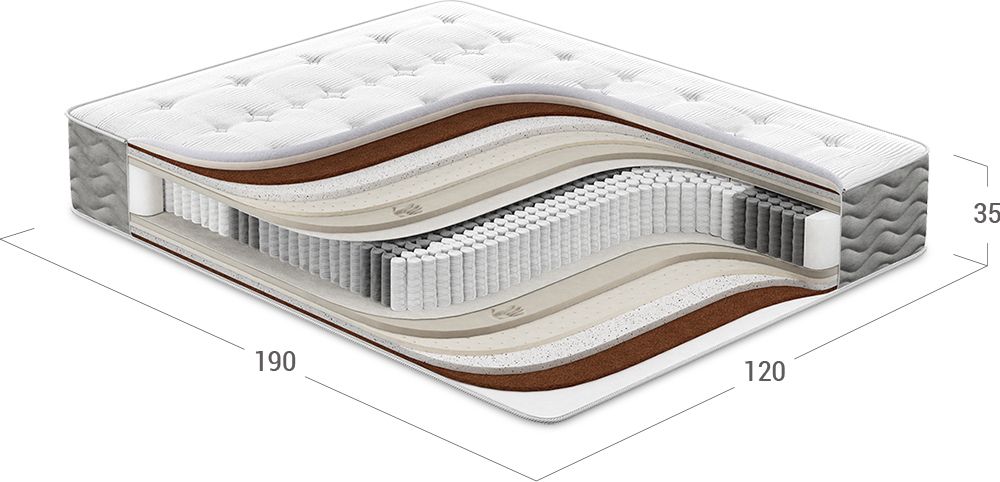 Значительно повышает жесткость спального места, обеспечивает равномерную поддержку тела во время сна. Полностью состоит из натуральных материалов. Добавляет прочности всей конструкции матраса.