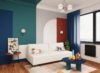 Спинка, выполненная в обивочной ткани, позволяет ставить диван в центре комнаты и зонировать пространство.
