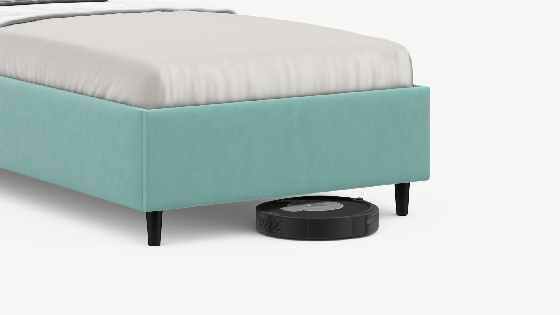 Благодаря высоким опорам под кроватью проходит робот-пылесос и легко проводится влажная уборка, что обеспечивает чистоту и порядок в доме.
