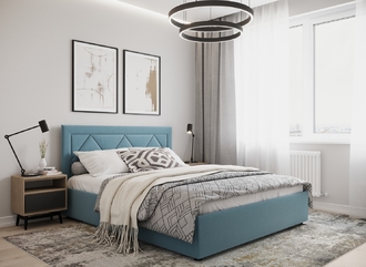 Фактура обивочного материала подбирается дизайнерами с учетом технологических и стилевых особенностей кровати.
