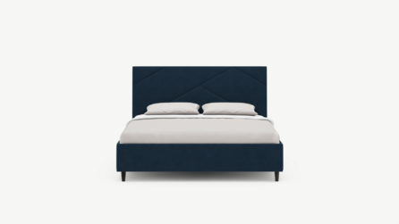 Элегантным и практичным акцентом служат скрытые карманы, расположенные по его углам. Лаконичные формы объемных царг создают единый гармоничный образ и фокусируют внимание на центральном текстурном элементе кровати.