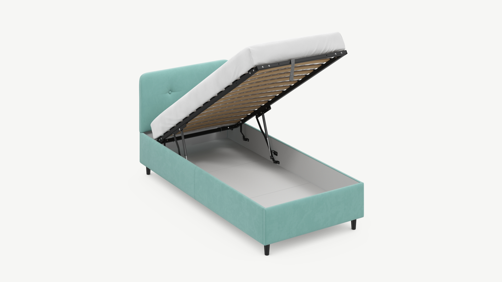 - Скрытая под основанием вместительная емкость без внутренних перегородок позволяет использовать всю площадь подкроватного пространства для хранения вещей.
