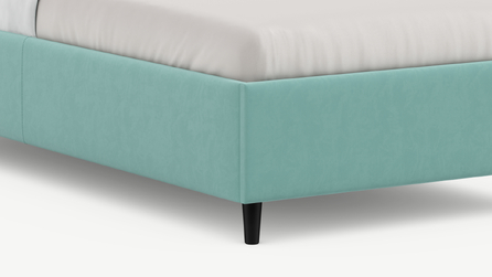 Царга, задающая пропорции, благодаря гладкости своей фактуры подчеркивает центральный элемент декора. Высокие опоры приподнимают фигуру кровати над полом и добавляют её образу визуальной легкости.