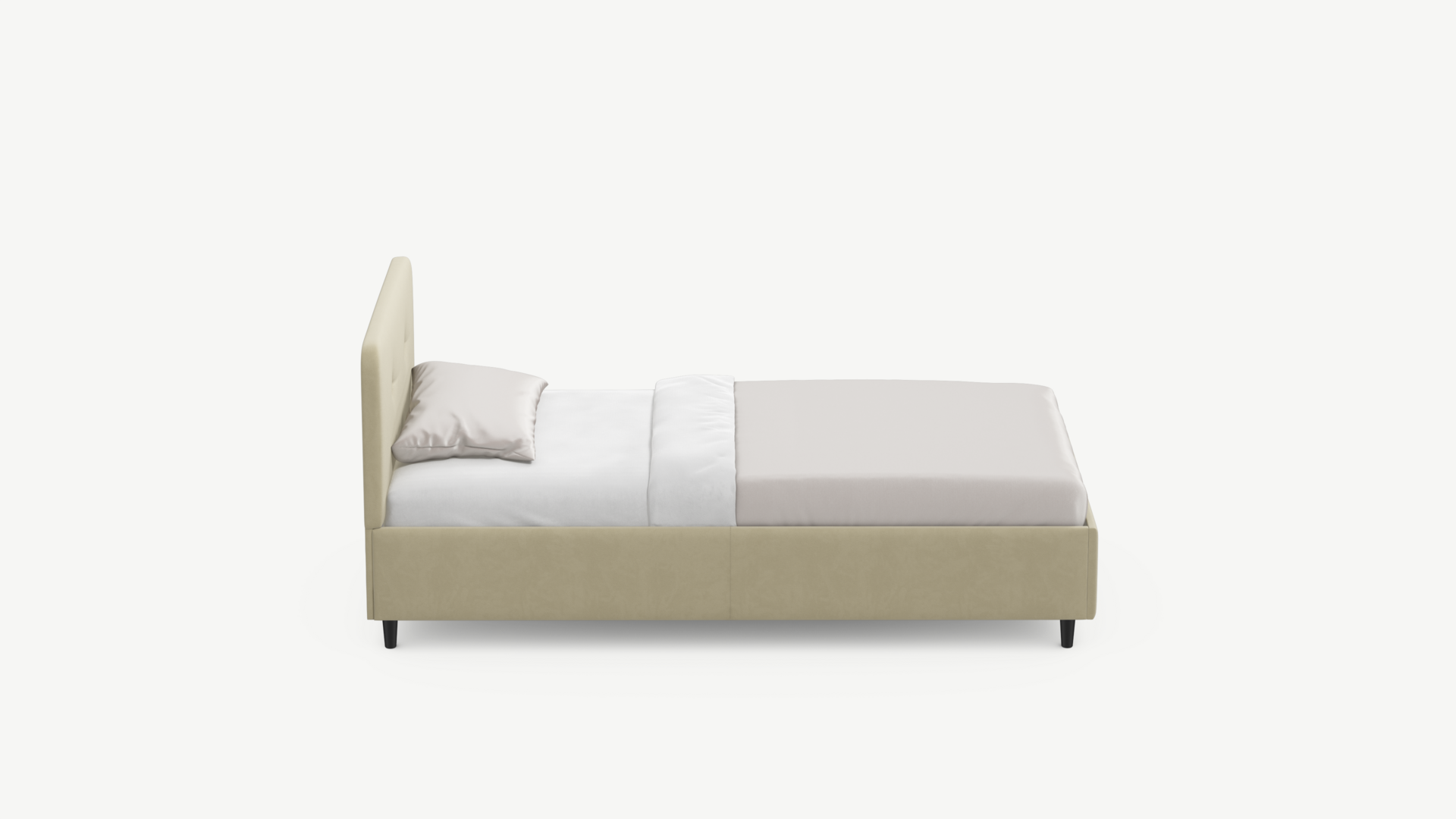 Царга, задающая пропорции, благодаря гладкости своей фактуры подчеркивает центральный элемент декора. Высокие опоры приподнимают фигуру кровати над полом и добавляют её образу визуальной легкости.