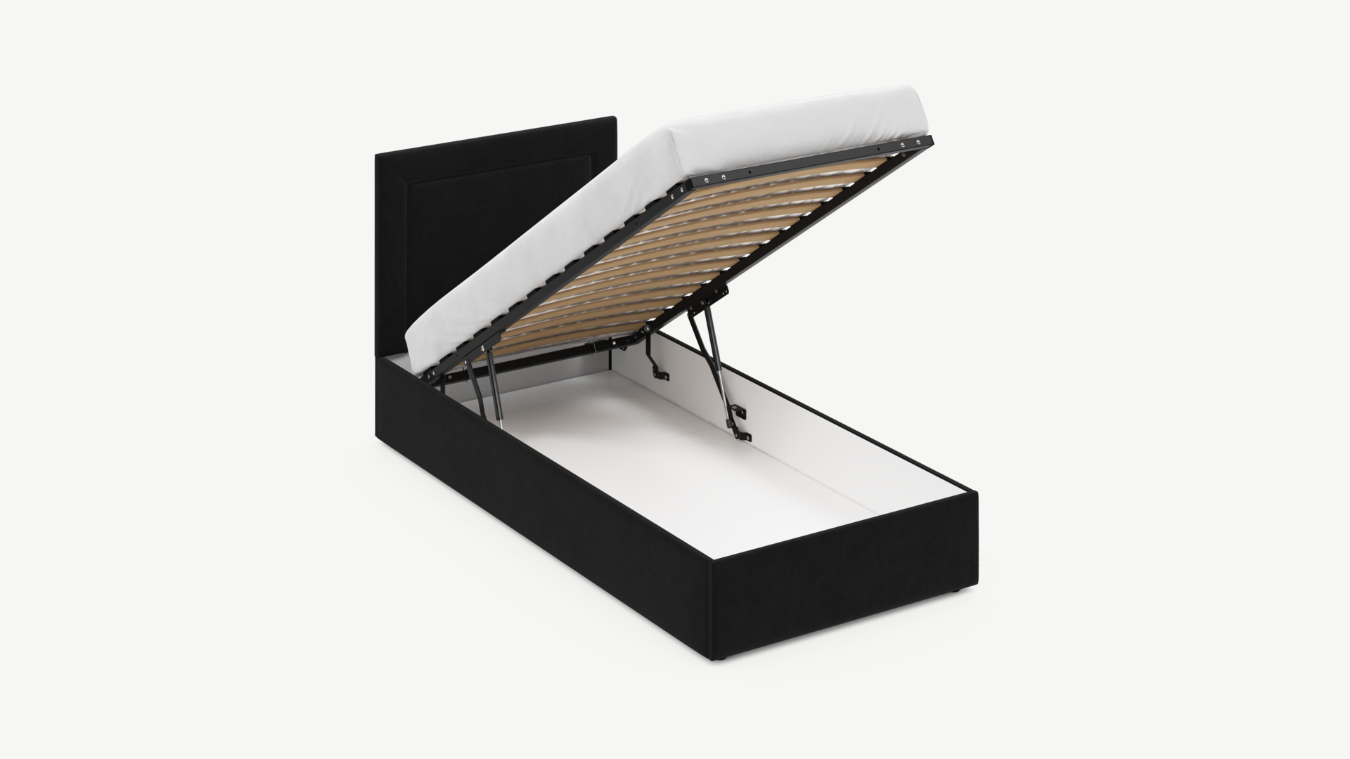Регулируемый подъемный механизм с газовыми амортизаторами позволяет плавно и бесшумно поднимать и опускать спальное место.