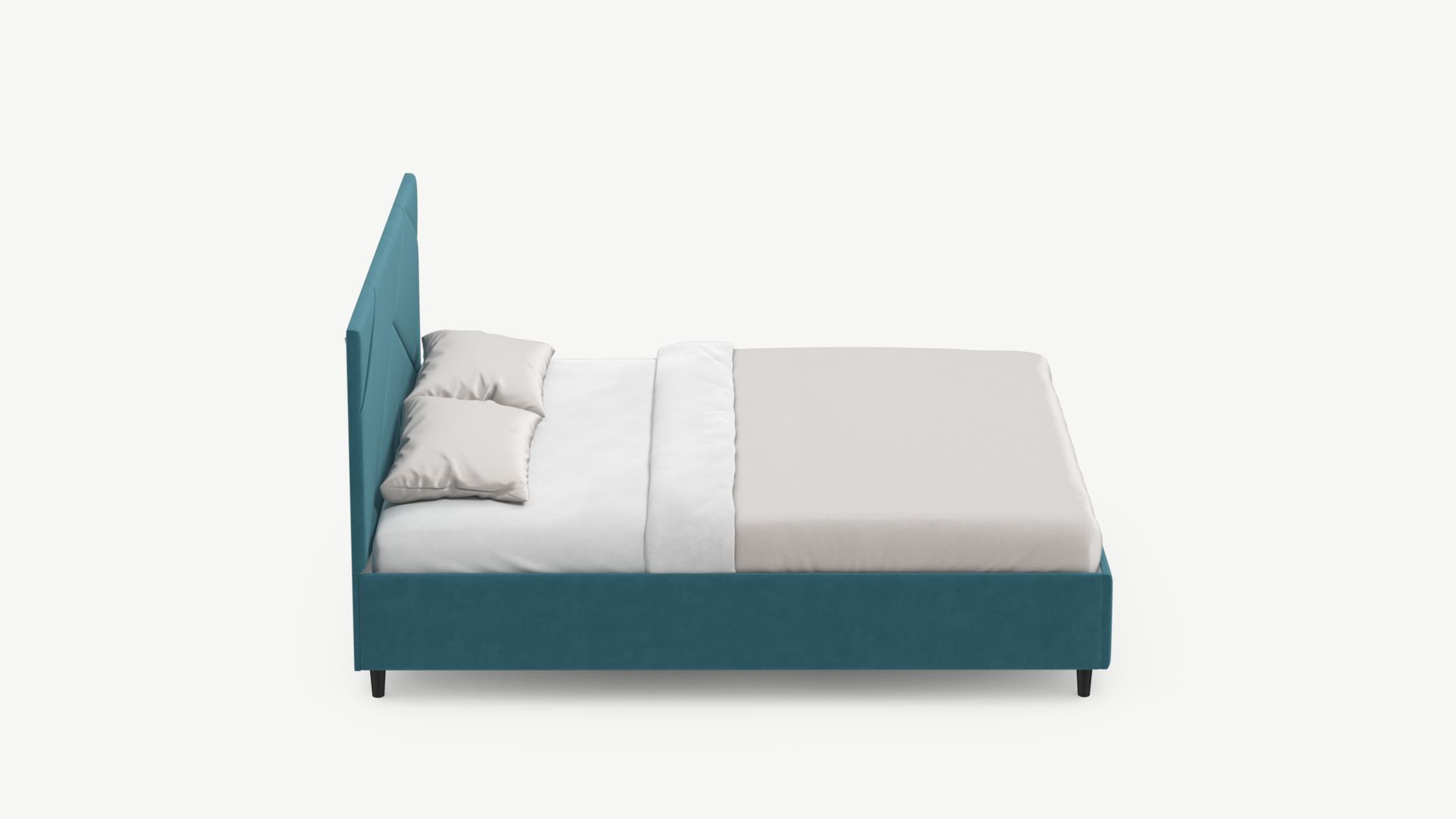 Элегантным и практичным акцентом служат скрытые карманы, расположенные по его углам. Лаконичные формы объемных царг создают единый гармоничный образ и фокусируют внимание на центральном текстурном элементе кровати.