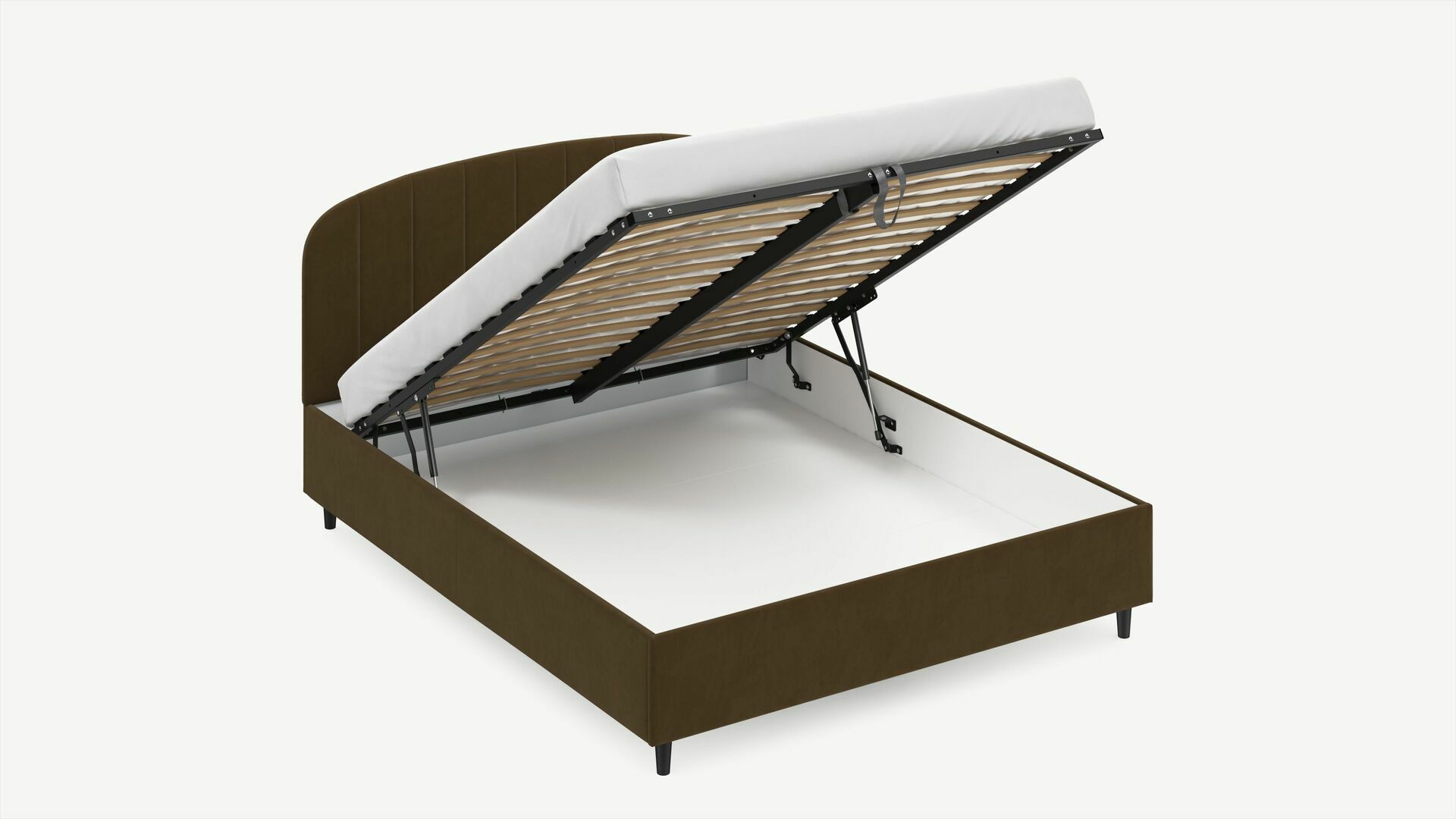 • Скрытая под основанием вместительная емкость без внутренних перегородок позволяет использовать всю площадь подкроватного пространства для хранения вещей.
