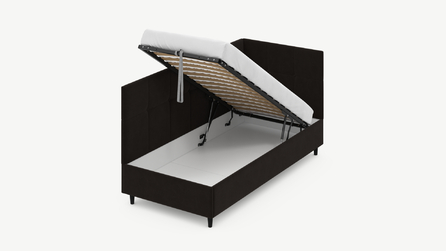 • Скрытая под основанием вместительная емкость без внутренних перегородок позволяет использовать всю площадь подкроватного пространства для хранения вещей.