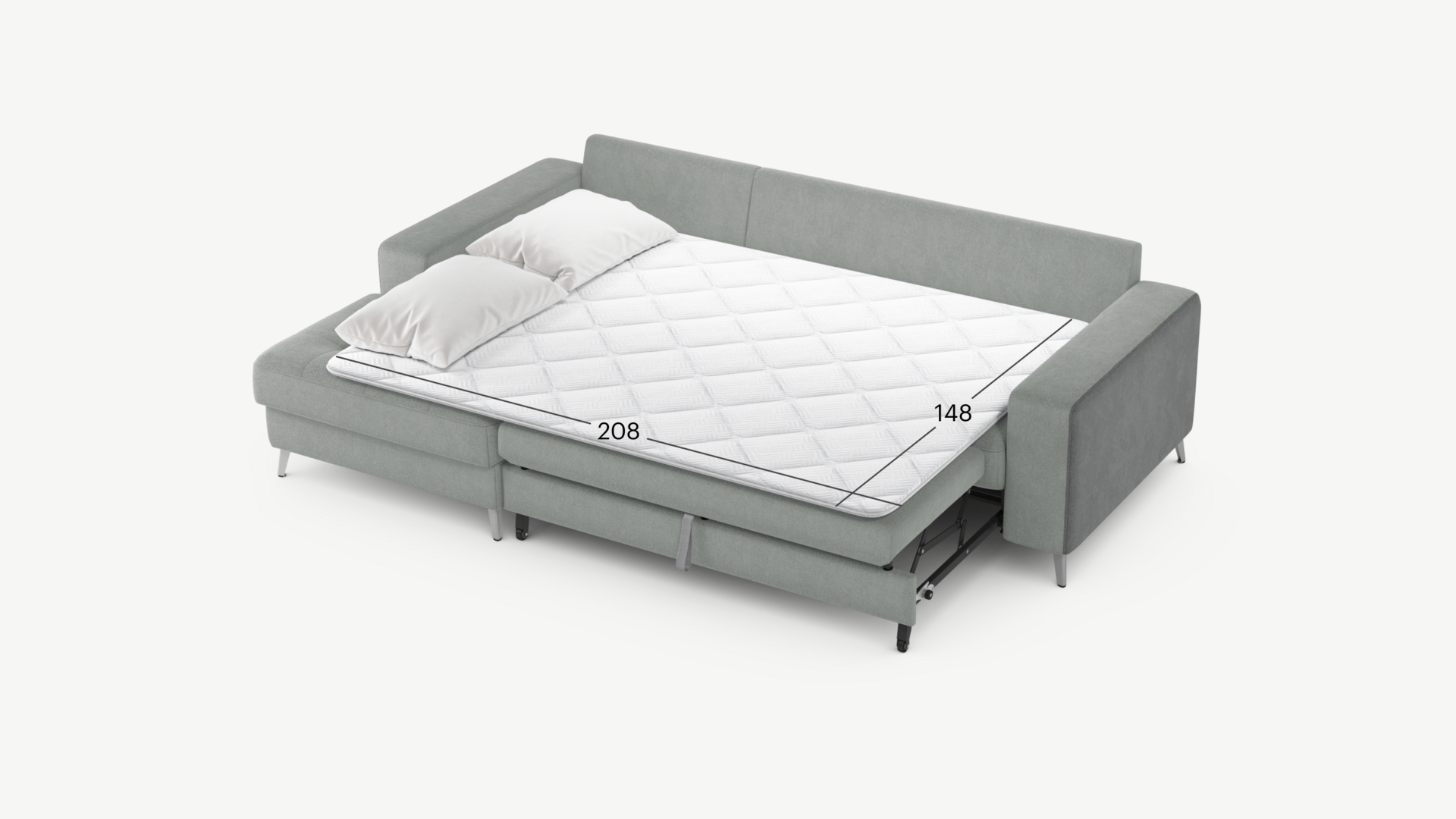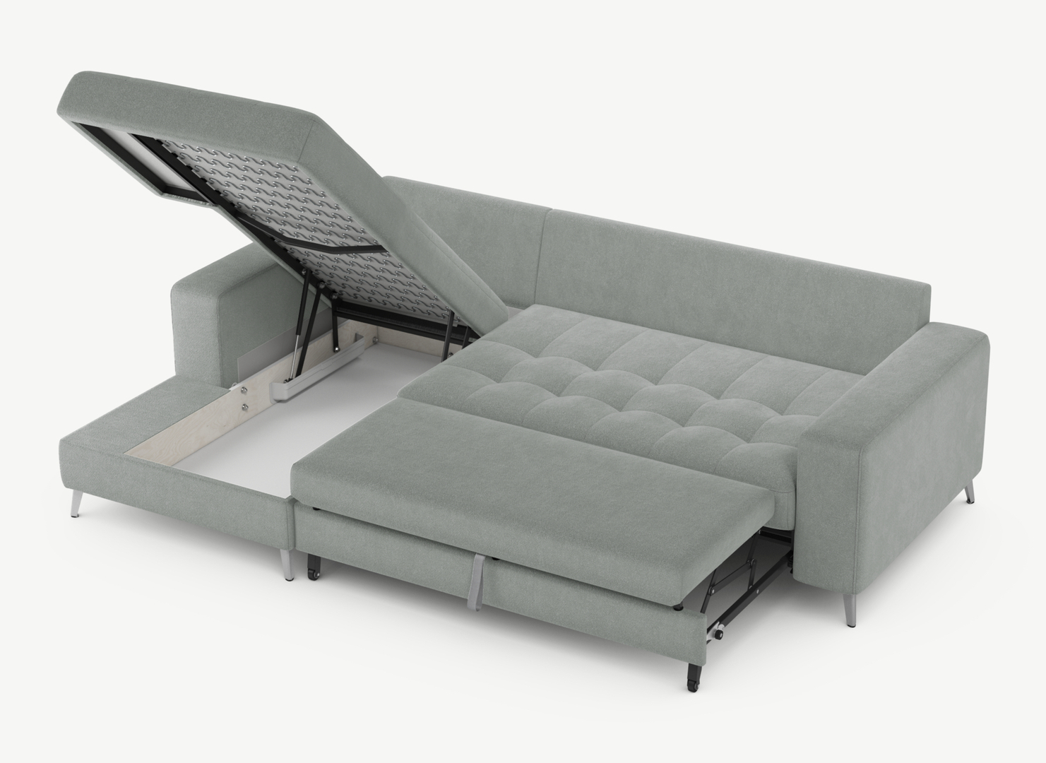 Секция «канапе» обеспечивает дополнительное пространство для отдыха, благодаря которому Вы можете располагаться с максимальным комфортом, удобно вытянув ноги. Под данной секцией расположен вместительный бельевой короб.