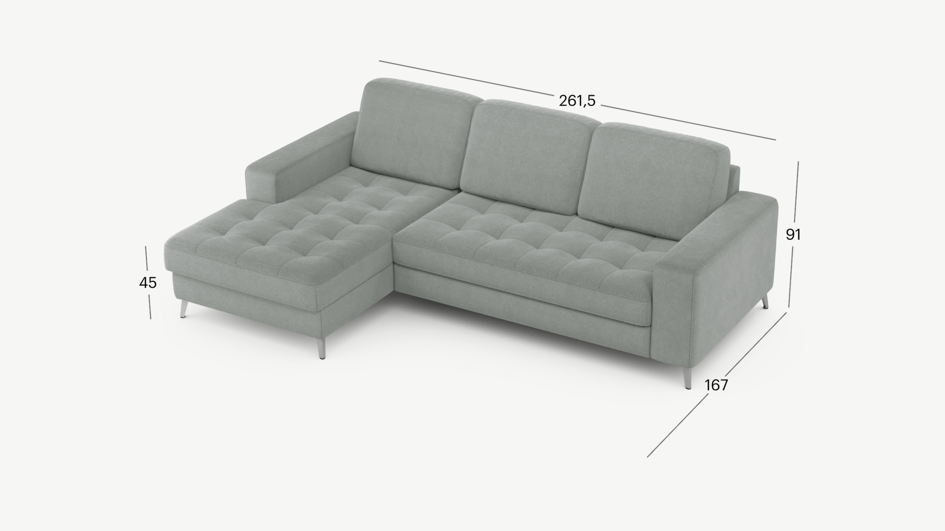 261.5x167x91 см