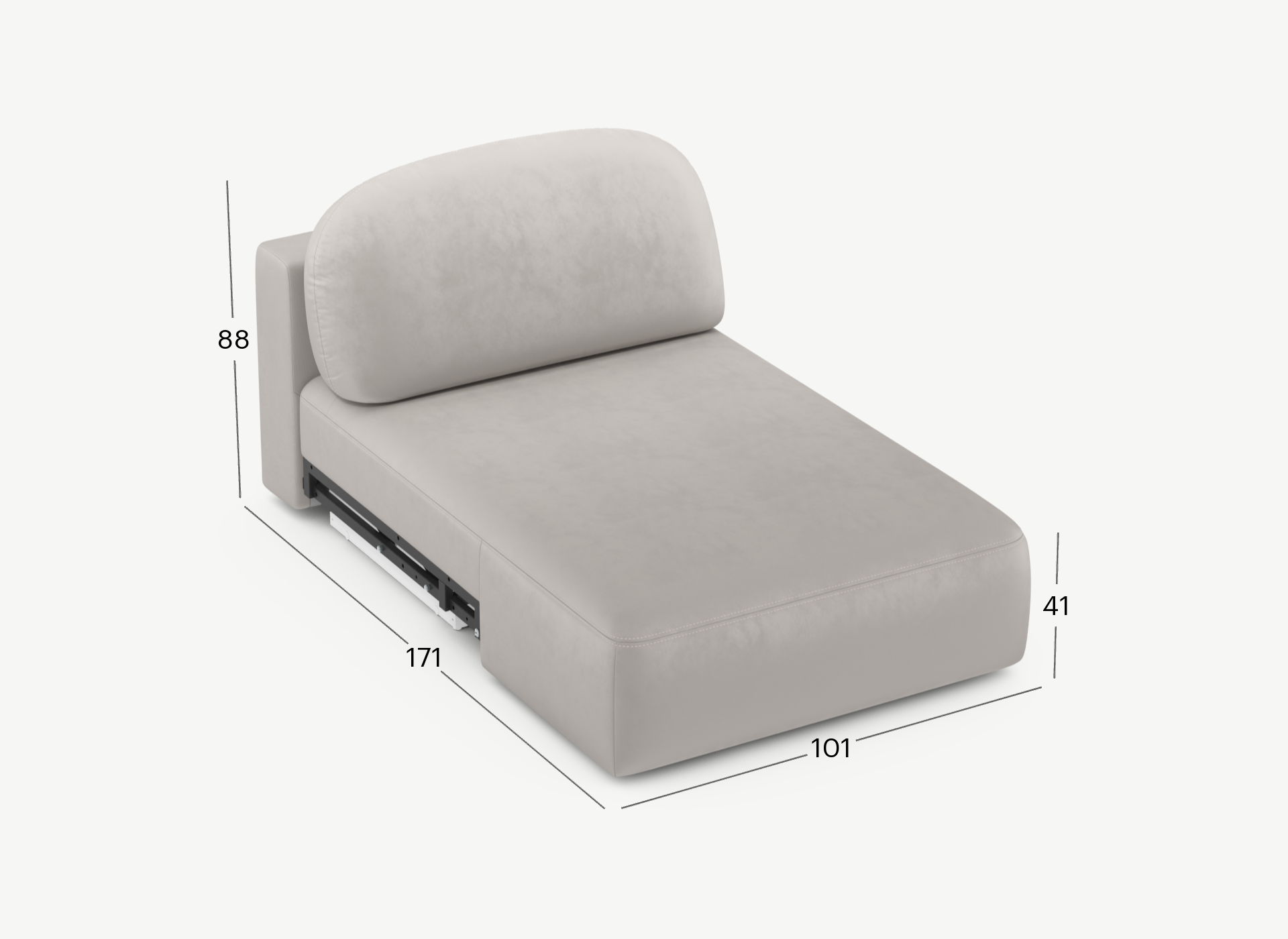 • Регулируемый подъемный механизм имеет два положения установки газовых амортизаторов в зависимости от веса матраса. Это дает возможность оптимально подстраивать угол подъема основания, а также плавно и бесшумно поднимать и опускать спальное место.