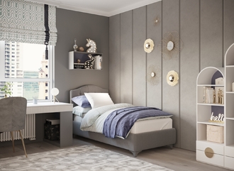 Разнообразие цветовой палитры позволит подобрать желаемый оттенок обивочной ткани. Использование светлых цветов поддержит настроение стиля «Сканди». Приглушенные насыщенные оттенки оформят кровать в стиле «Лофт». Нейтральные оттенки в цвет интерьера обыграют спальню в Современном стиле.